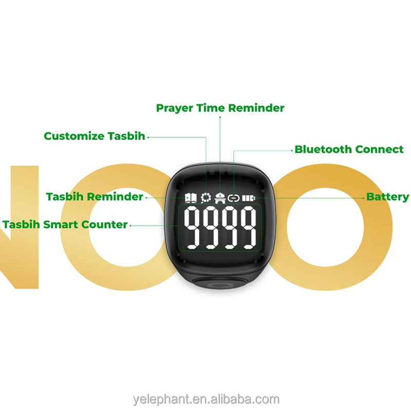 function: Alarm Clock, Playing the Quran, Prayer reminder, Qibla Direction, Smart Counter, Countdown