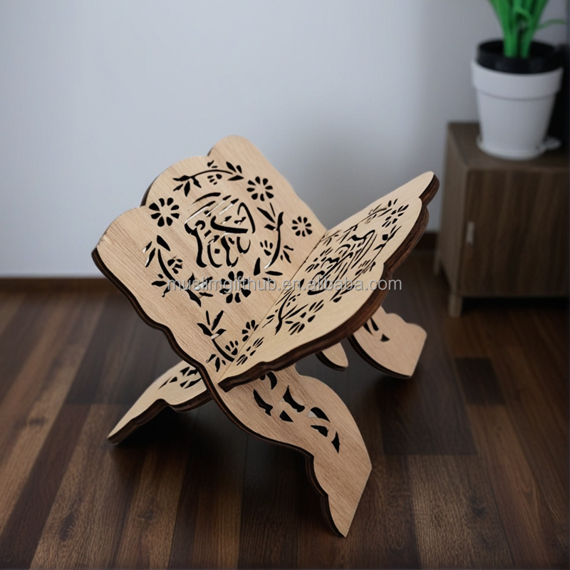 Sjd Islamic Gift Trade Retro Carved Handcrafted Detachable Folding Quran Book Reading Stand Wooden Holder for Quran