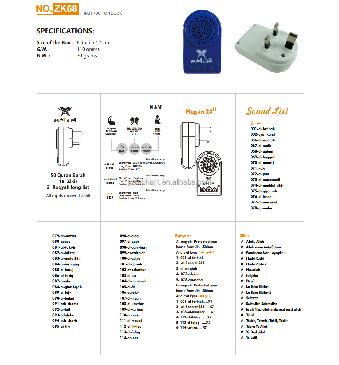 Be the first to review “Zk68 Kids Koran Dan Surah (Ruqyah) Speaker Plug in Auto Play Islamic Quran and Zikir”